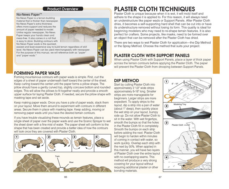 It costs $20, which might seem pricey for a guide that also serves as a catalog for Woodland Scenics products. I can tell you it has been worth every penny to me, and I’ve used it almost every day I’ve been creating my train layout. Even the manual itself is high-quality, spiral bound to sit flat on the layout as you consult it and tough enough to resist water, plaster dust, etc.