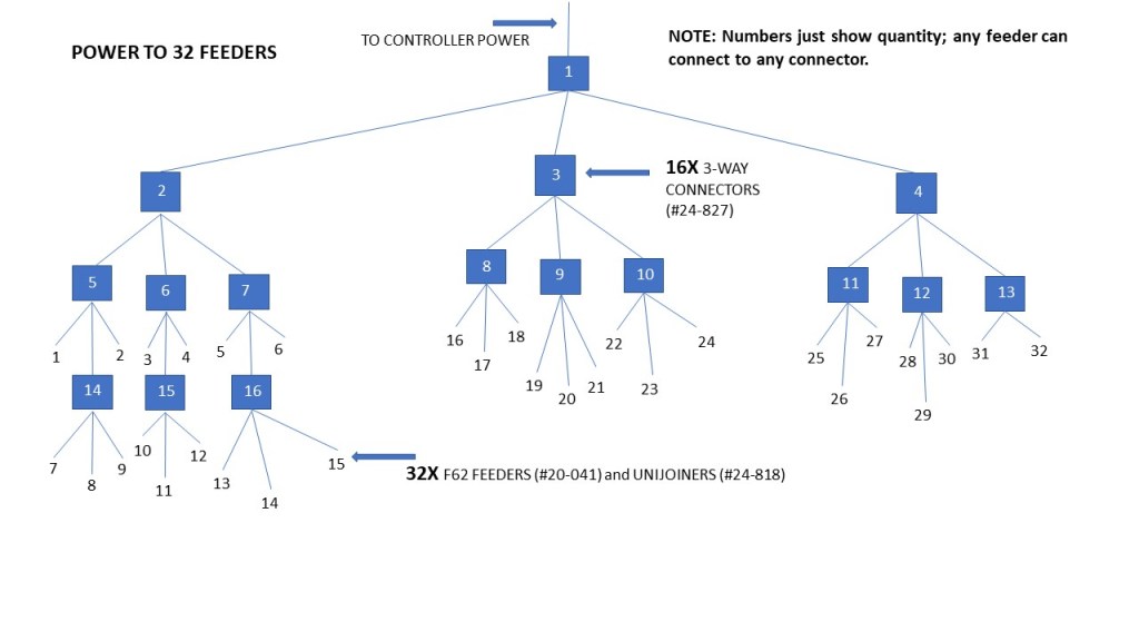 Feeders were connected with 3-way connectors to the controller, like this: