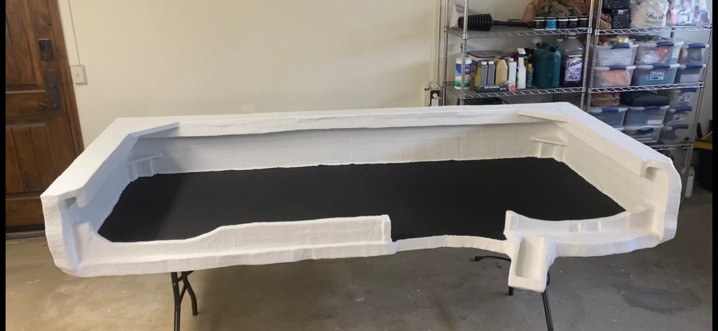 Hey Everybody!! Here’s how plastering my 3×8, N scale train layout baseboard is going, with Woodland Scenics Plaster Cloth Sheets over a glued Foamular structure— all supported by a 96 inch by 30 inch plastic table. Come check it out!